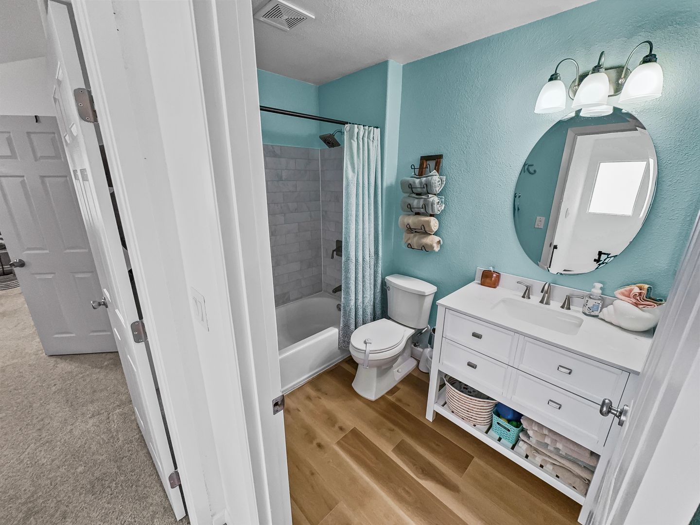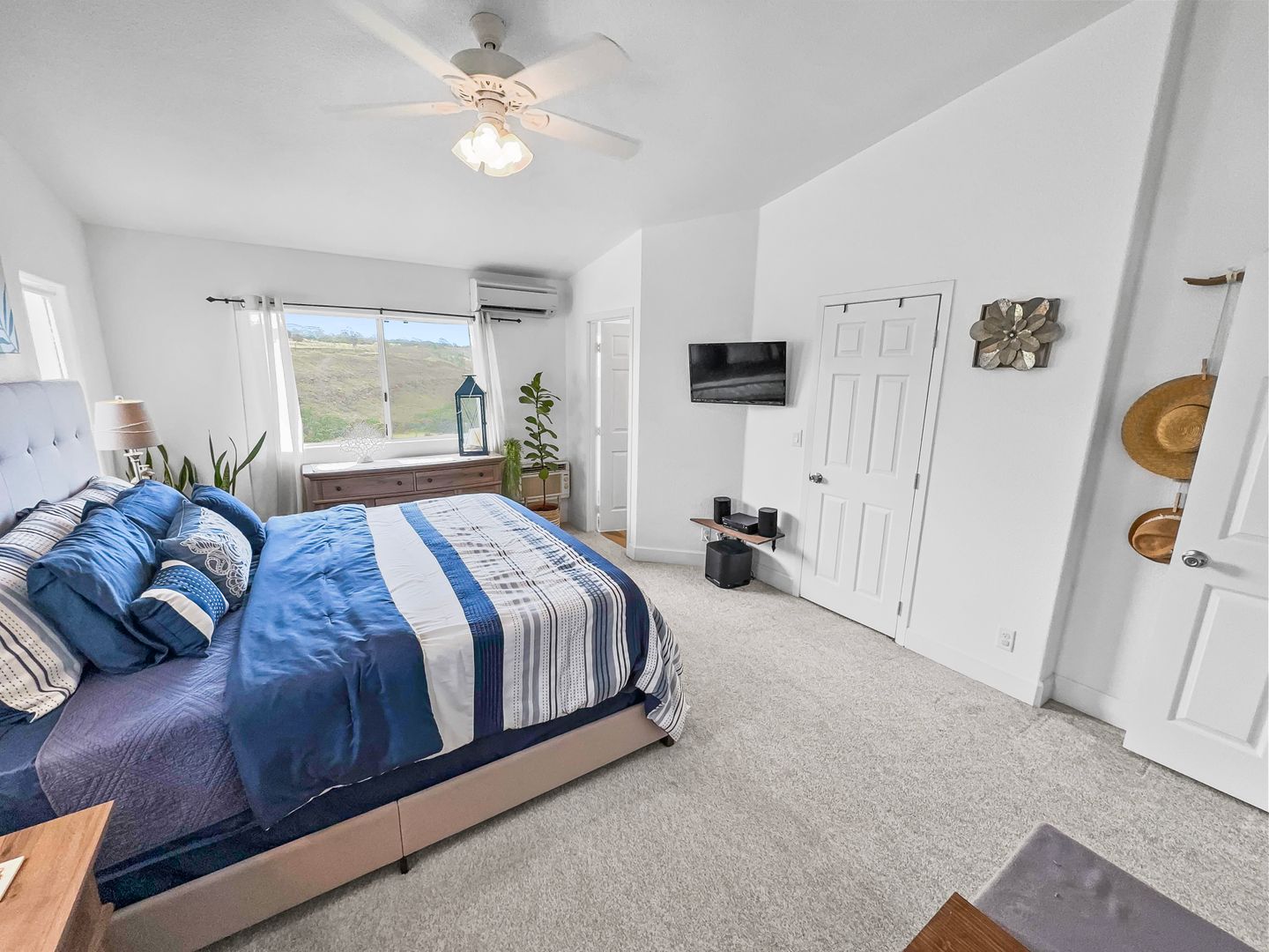 Upstairs the spacious primary suite has vaulted ceilings, sweeping views, a walk in closet and an ensuite custom bathroom. Across the hall are two more bedrooms with lots of light, full size closets that share the hallways full size bathroom.