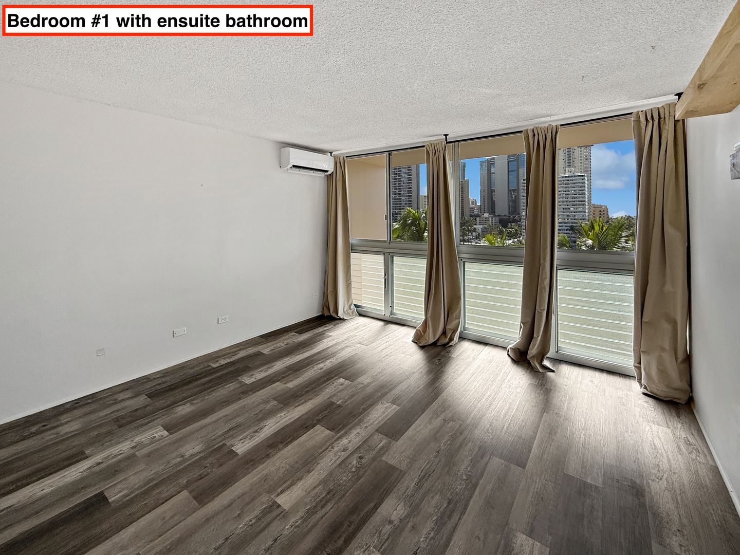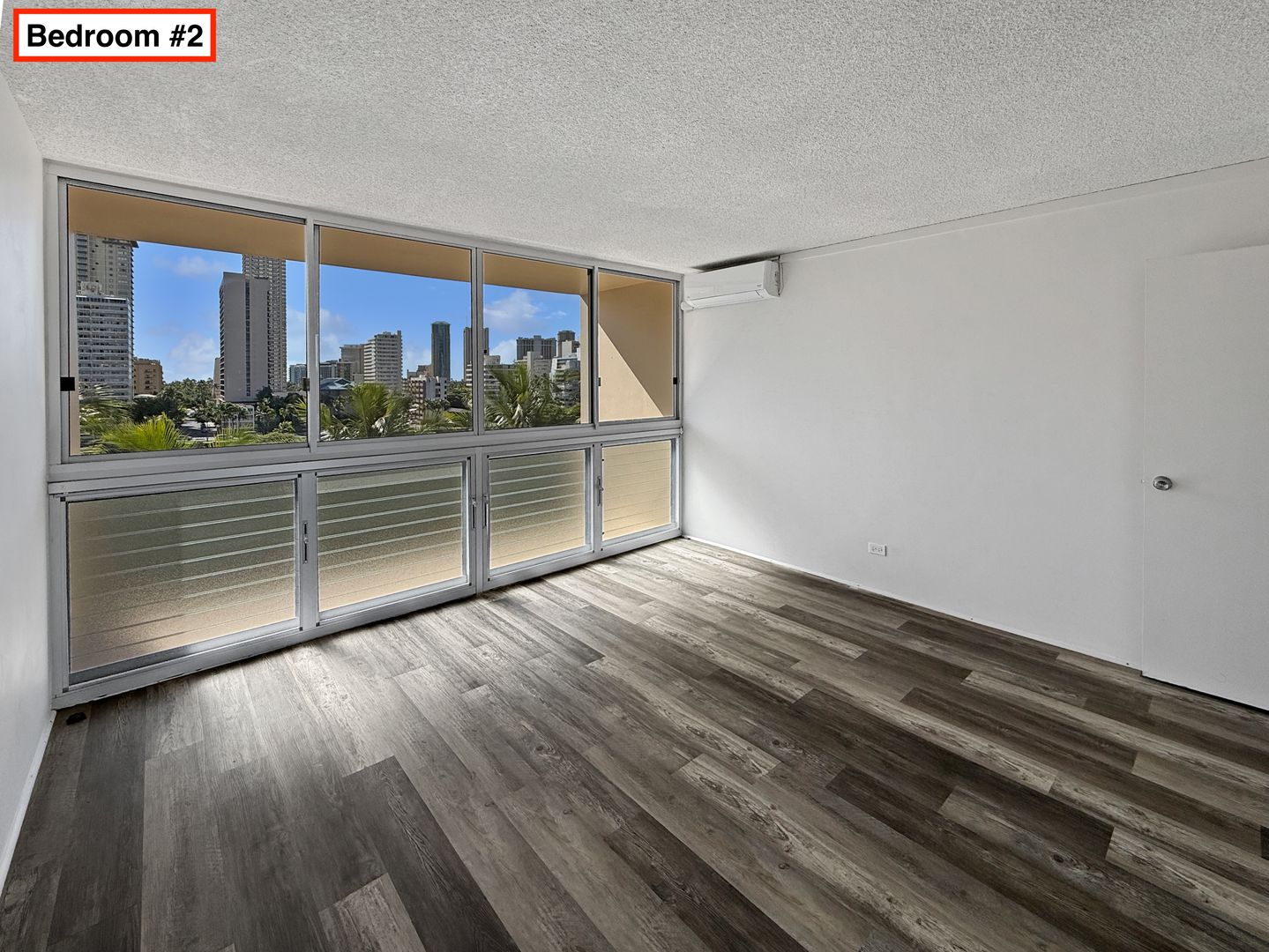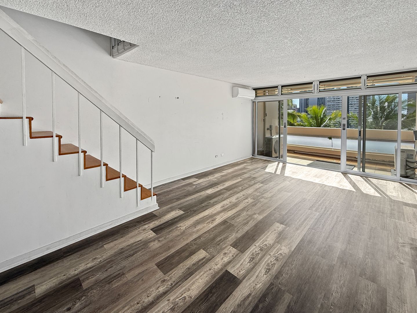 Beautifully renovated 3 bedroom 2.5 bath pet friendly condo with wonderful views of Waikiki and the Canal! Large living dining area with AC, luxury vinyl plank flooring that opens onto a covered lanai overlooking Ala Wai Park and Waikiki. Chef's kitchen has modern appliances, plenty of cabinets and a movable island. Off the kitchen is a half bath for your convenience. Upstairs is the Primary Suite with floor to ceiling windows with great views, AC and an ensuite bath. Down the hall are two more guest rooms that share a hall bathroom. One guest room has durable gym flooring making it the perfect place for your work out!