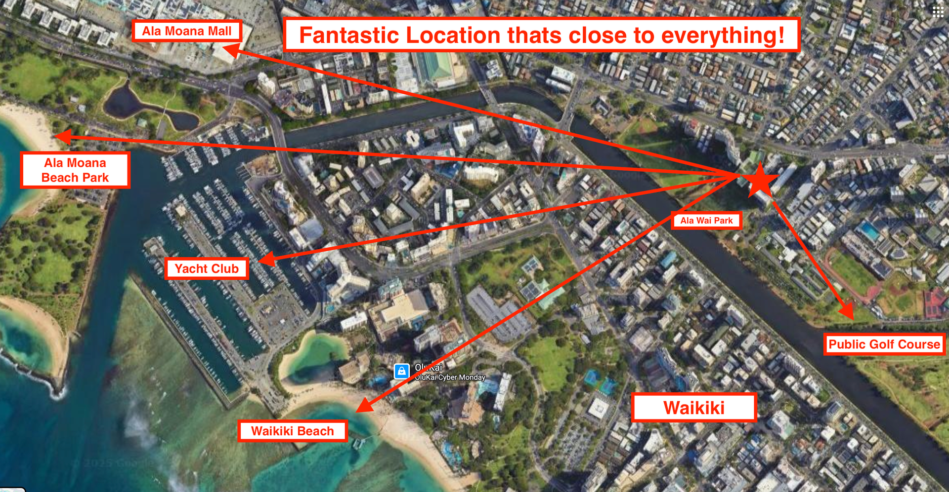 Ala Wai Plaza boasts a pool, gym, and party room! Secure building with Ala Wai Park, tennis court, basket ball court, baseball diamond, and walking paths just outside your door! Super close to shopping, restaurants and all that Waikiki has to offer. Pet friendly!