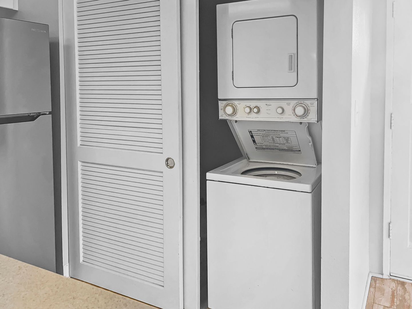Beautiful & private upstairs 1 bedroom condo w/ 1 covered stall & guest parking! Lots of natural light a big balcony with storage & views. Open concept kitchen, spacious living room with ceiling fan plus in unit washer dryer! Primary bdrm has full size closet, AC and ceiling fan. Chill by the pool or entertain friends! Pet friendly this great corner condo has it all!