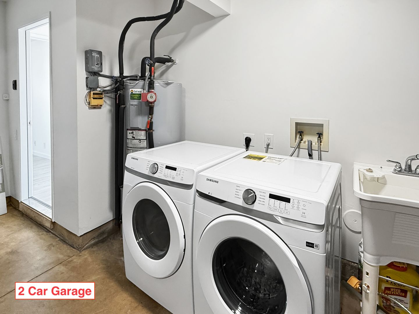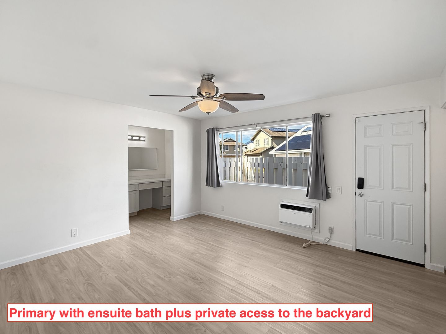 Downstairs is the Primary suite with plenty of closets, AC, ceiling fan plus an ensuite bath! You even have private access to the back yard. The pet friendly yard is fully fenced with xeriscape landscaping for easy care! You have a full size washer and dryer in the two car garage plus ample parking on the driveway.