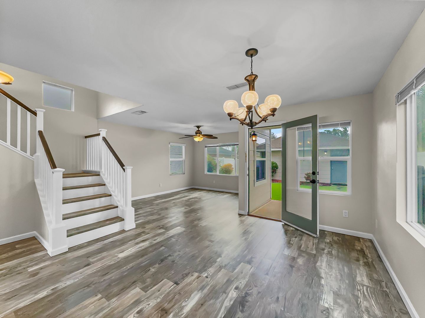 Welcome to this beautifully appointed 3-bedroom, 2.5-bath residence offering comfort, style, and thoughtful design throughout. Expansive living and dining areas create an elegant setting for entertaining, while the modern kitchen with breakfast nook blends functionality with contemporary appeal. Step outside to the covered lanai, where you can unwind while overlooking the professionally manicured backyard and attached two-car garage.