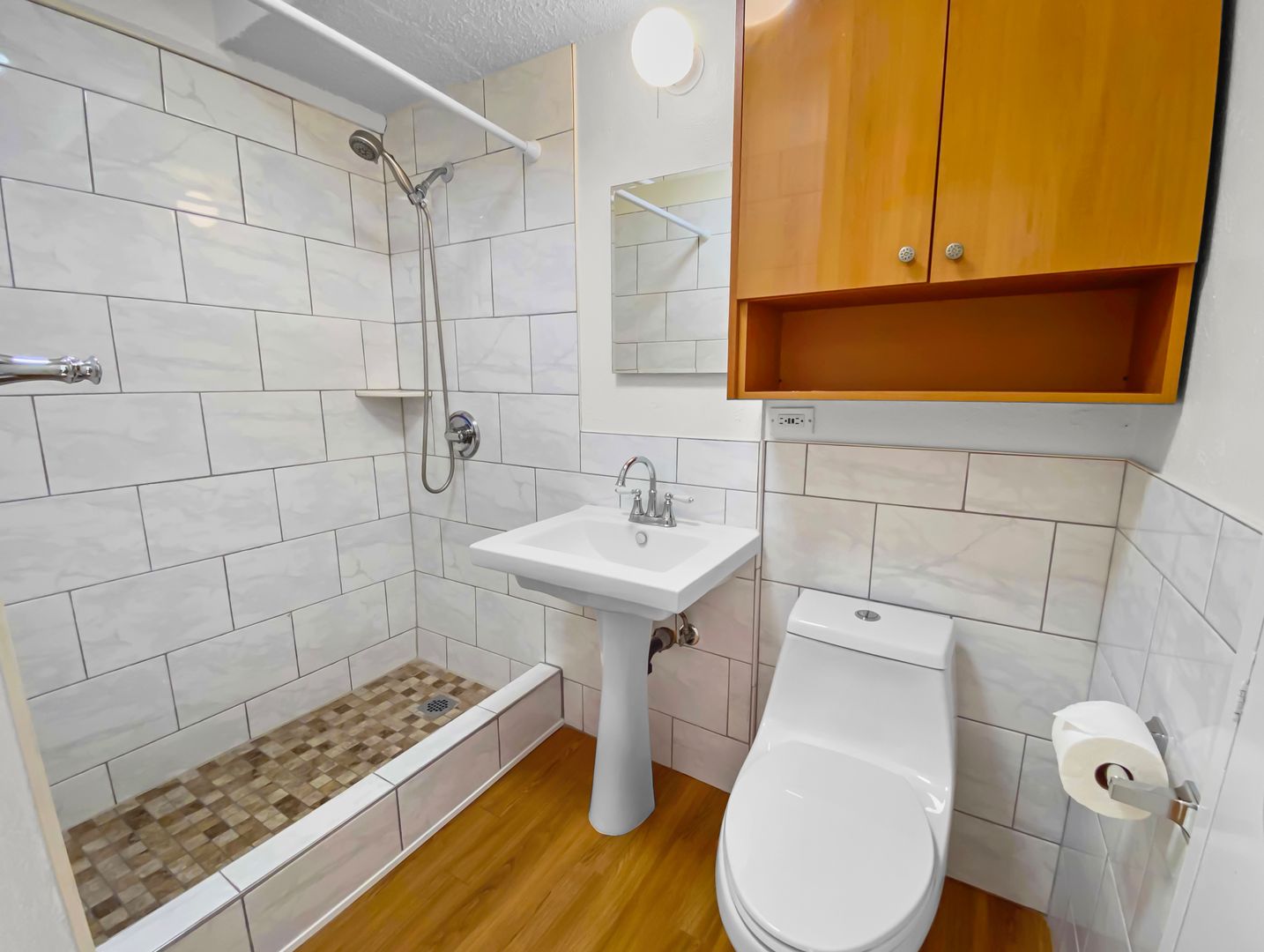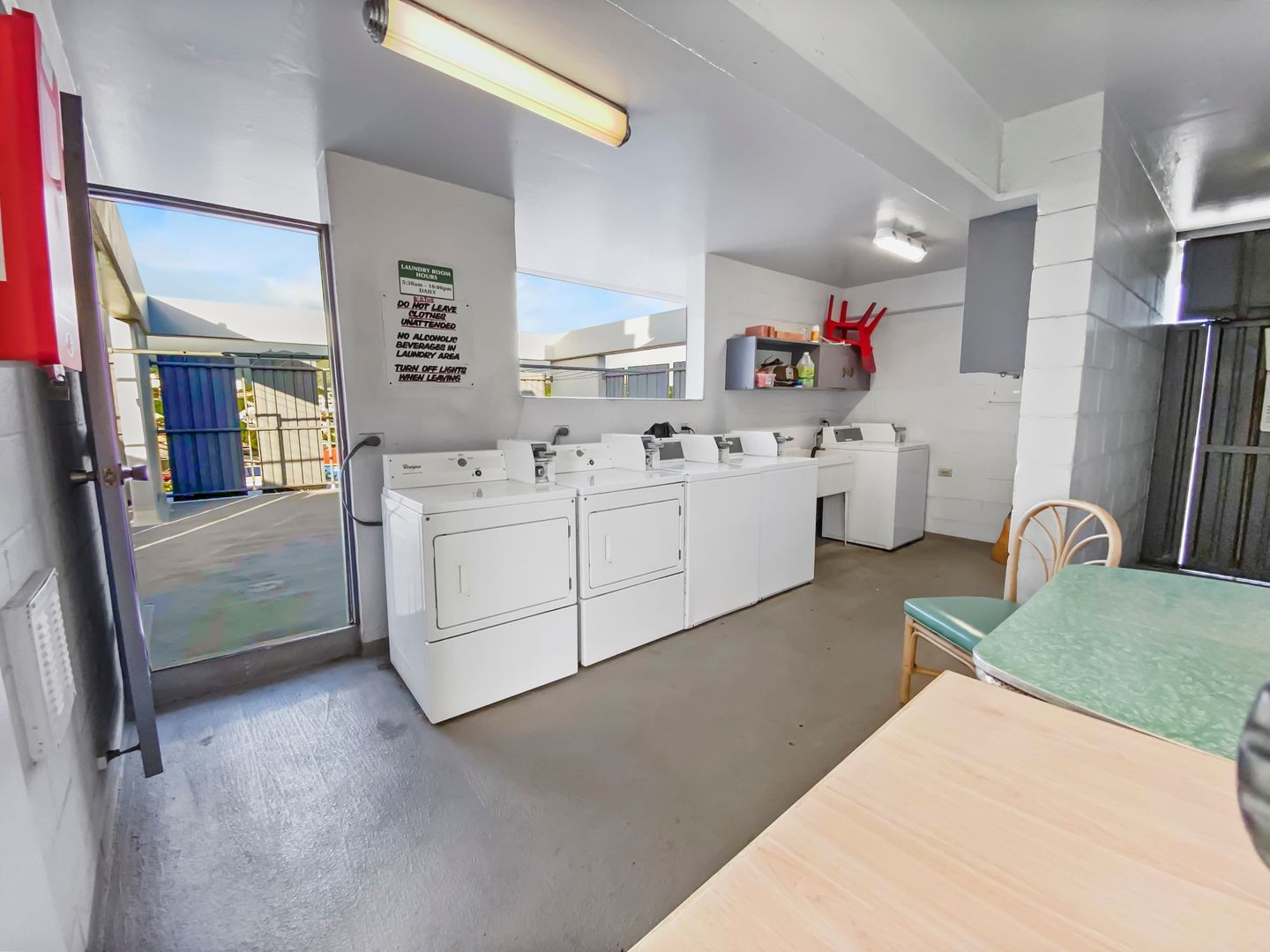 Elevator building, community laundry. Super convenient location, easy freeway access, near University, Safeway across the street and an easy bike to Waikiki Beach. It's Pet friendly!