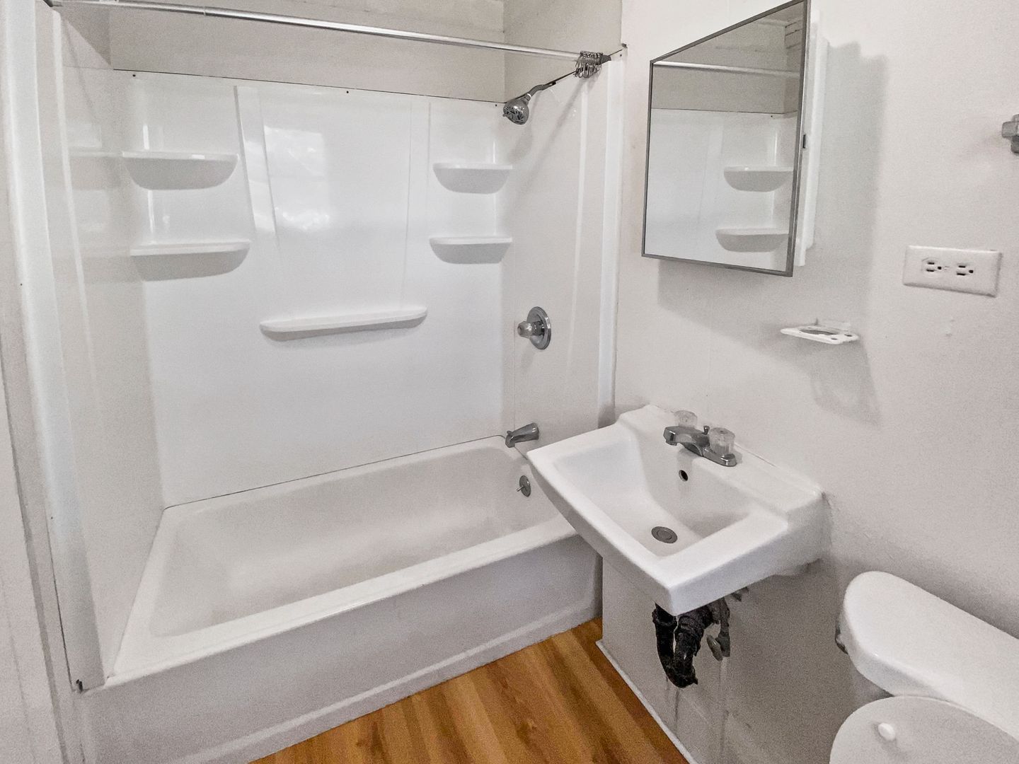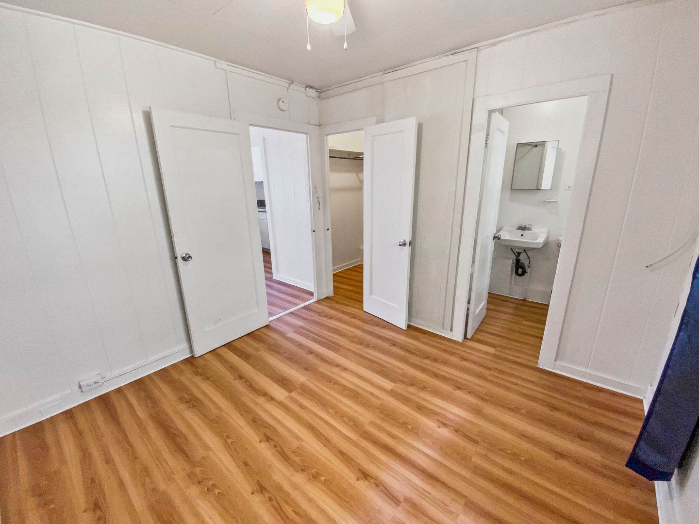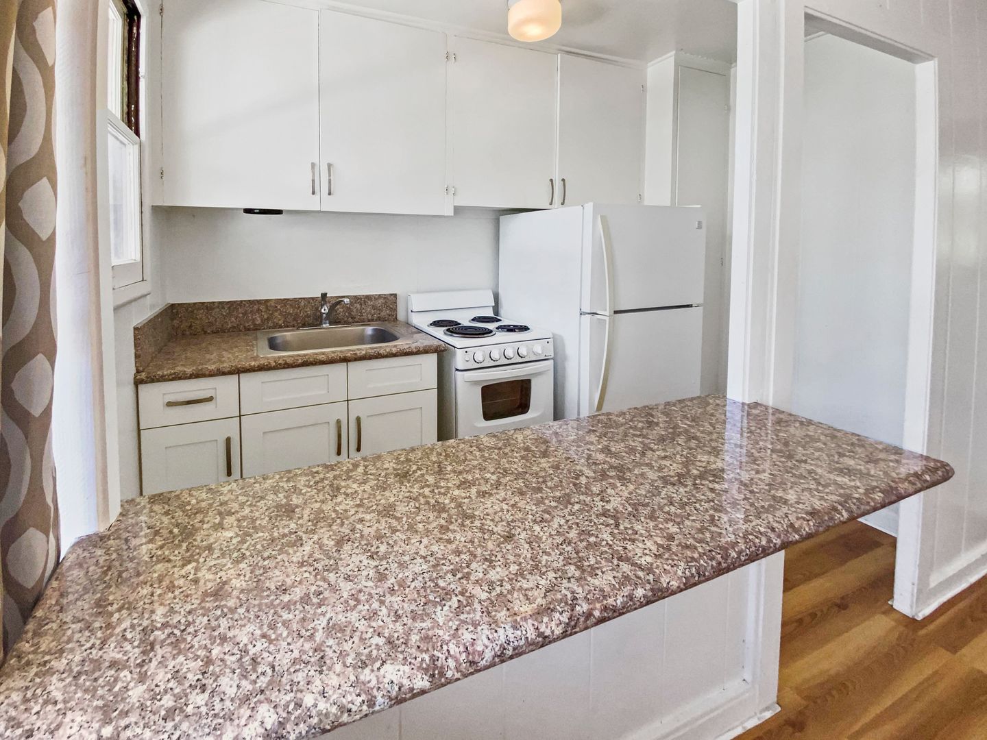Wow, great location in the building with lots of windows! Super affordable and bright 1 bedroom apt with breakfast bar, fresh paint, newer flooring, window AC. Nice sized rooms, w/ ceiling fans, full bath & huge walk in closet! Community laundry on site. 1 parking stall included.