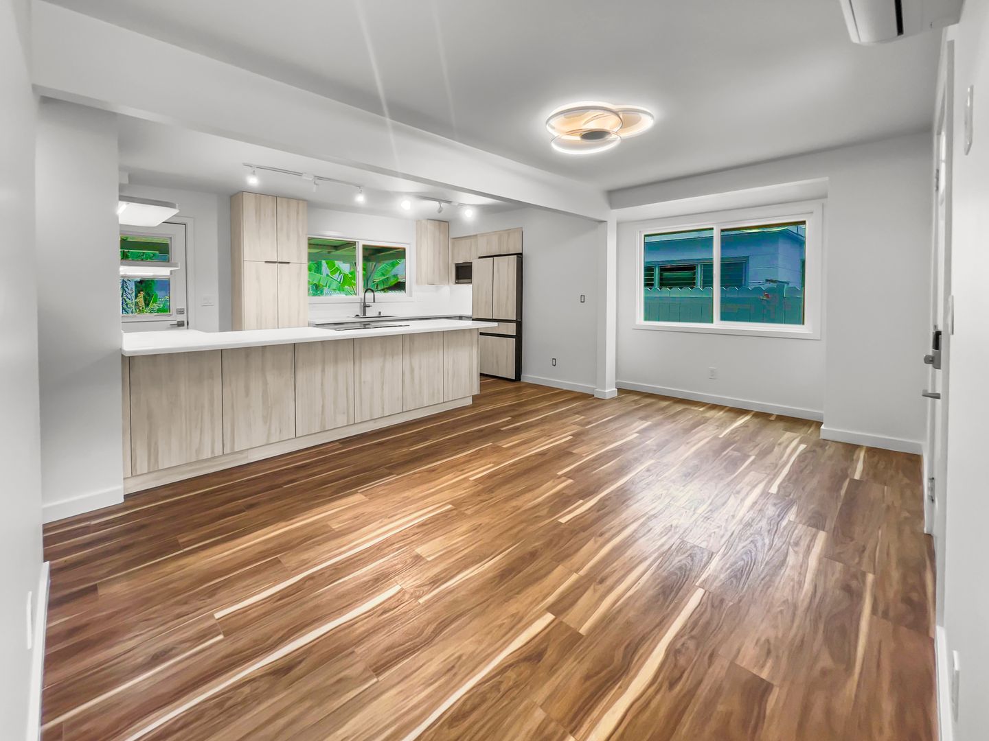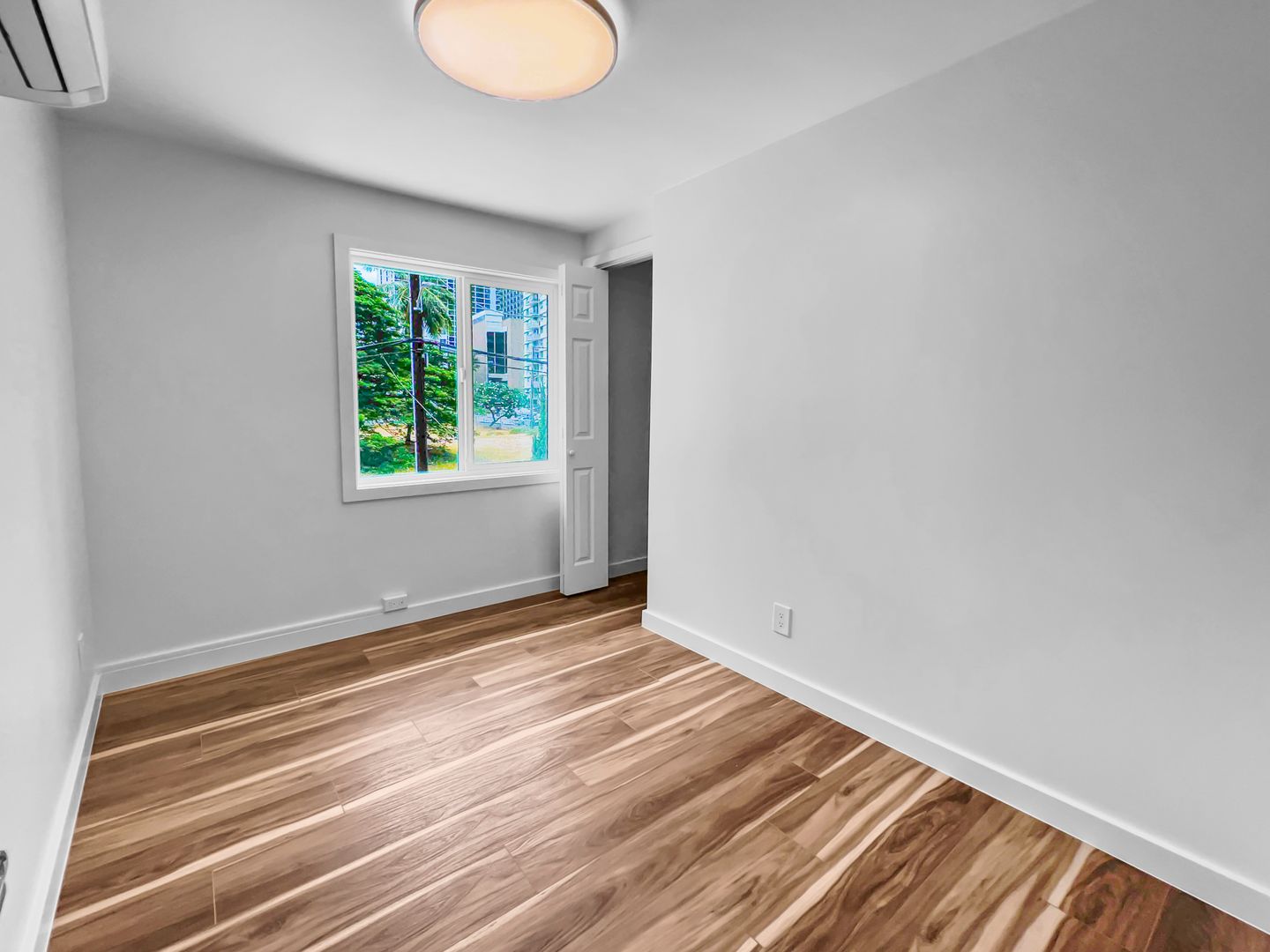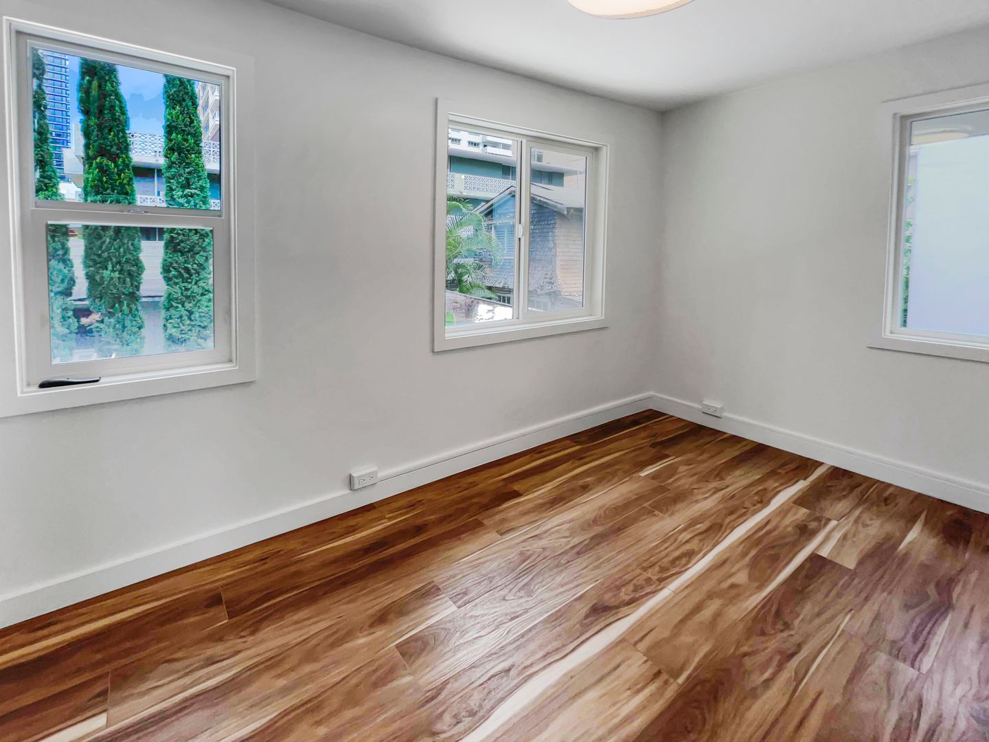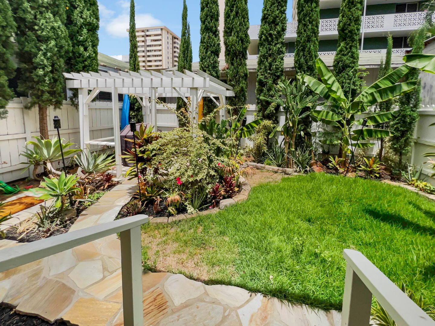 Fully renovated and gated Waikiki two story doll house with covered front and back porch plus a backyard! Charming 3 bedroom 2 bathroom bungalow is a must see with a modern kitchen featuring tons of counter space, solid countertops and brand new appliances. Open concept living room includes a full bathroom downstairs. All 3 bedrooms are on the 2nd floor. Primary bedroom with large closet and views of the city and backyard. New split AC's throughout the home plus a full size washer and dryer. Relax on the beautiful covered rear lanai that overlooks the garden. Theres with trellised bbq area and outdoor surfboard shower. Gated driveway that fits 2 cars. Walking distance to shops, restaurants, and the best part of Waikiki Beach.